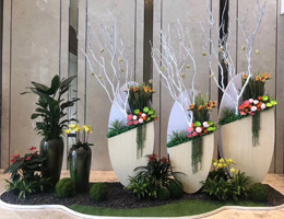 室內的植物租擺環境比較復雜。需要分為不同的區域,比如商場的走廊、電梯、大廳和商店門口等,在不同的季節結合商場的促銷活動等,設計不同的方案。